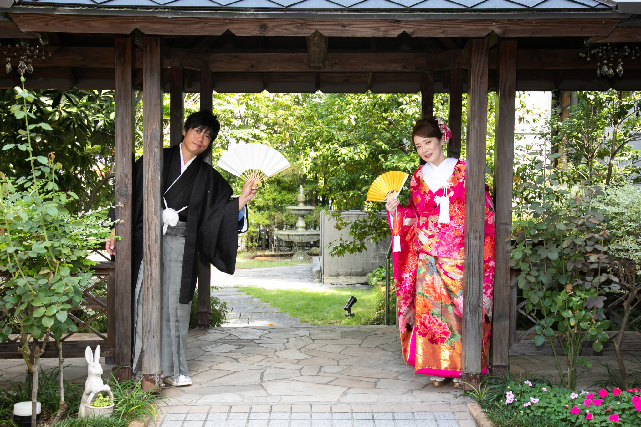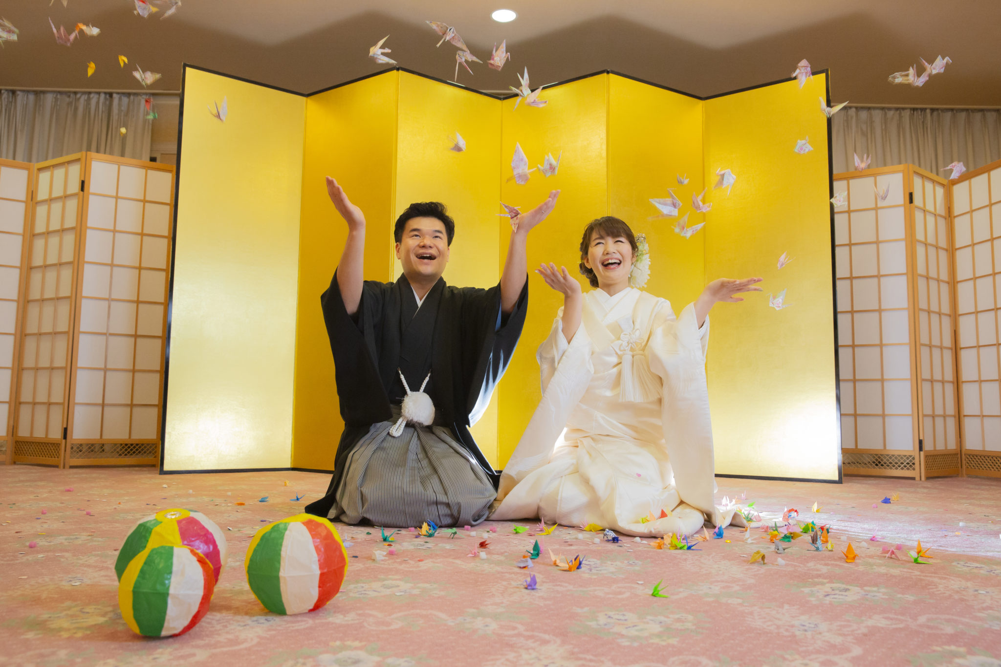 こちらのお写真はフラワーシャワーならぬ、折り鶴を舞わせた“ 折り鶴シャワー ”です。こちらも和装らしさがあふれる素敵な1枚です。