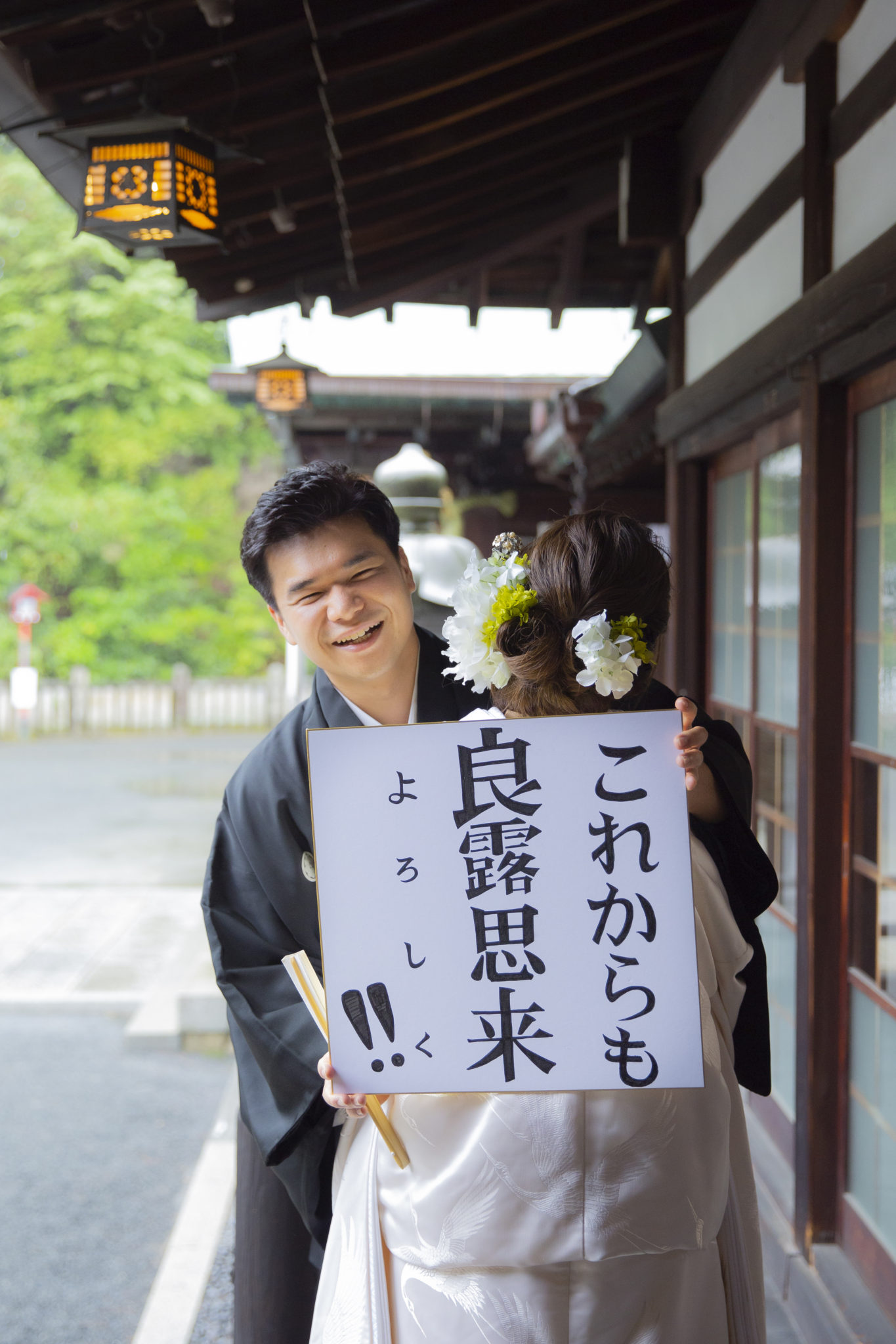 用紙のアレンジも自由で、ホワイトボードやクレヨンを使ったり、和風に習字イメージして書かれる方も。アレンジ次第で洋装にも和装にも合わせられるので取り入れやすいアイテムです。