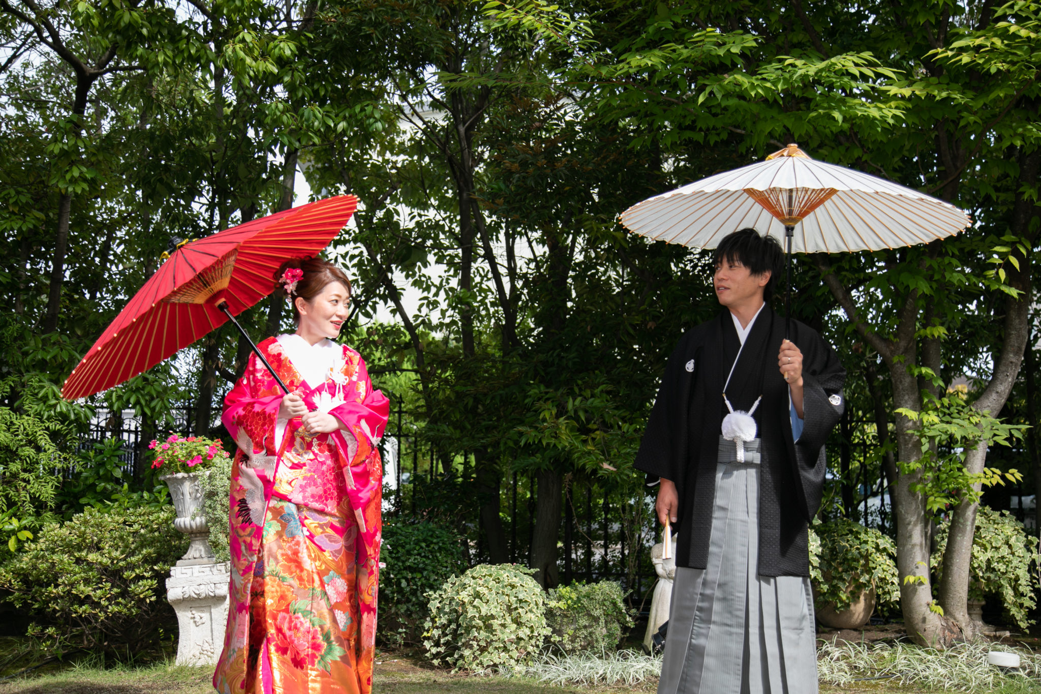 こちらは日本の伝統的な傘「 和傘 」を使ったショット。着物によく合う素敵な1枚です。