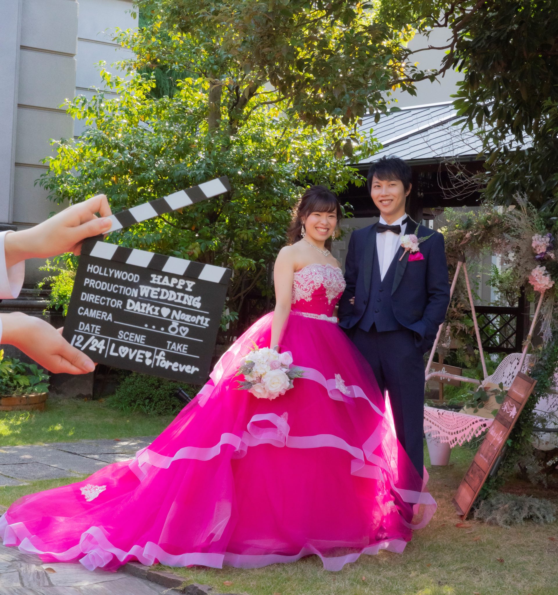 映画がお好きなおふたり。こちらのアイテムは映画の撮影で使われる “ カチンコ ” 英語では“クラッパーボード”と呼ばれるアイテムです。それに加えて、具体的に好きな映画があれば、映画に出てくるアイテムやポスター、キャラクターなどと撮影してもより素敵なお写真になるのではないでしょうか。