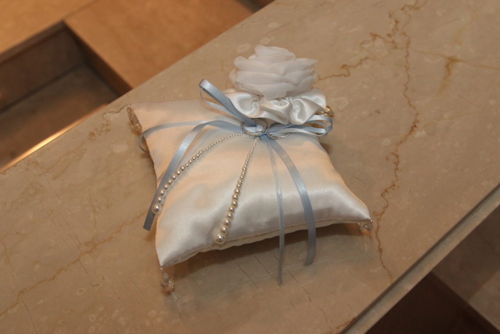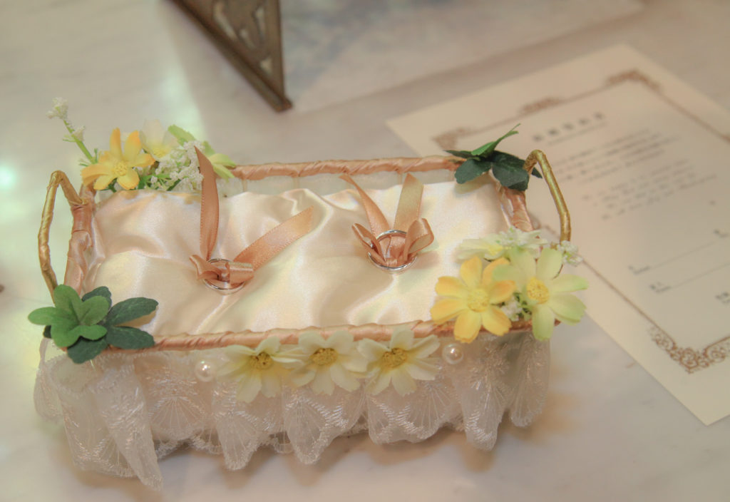 聖ペトロ教会では、リングピローのレンタルも可能です。購入するか手作りするかで迷っていらっしゃる方、リングピローの準備でご質問がある方も、お気軽にご相談くださいませ。