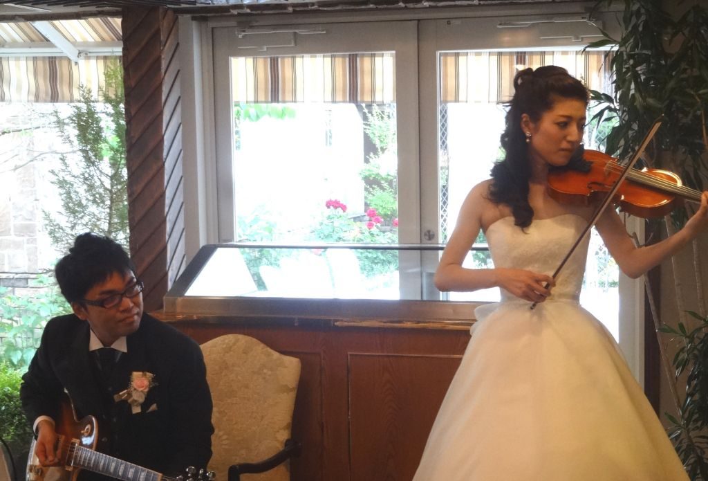 披露宴の終盤では、今までの感謝の気持ち、お役目に協力頂いた感謝の気持ちをおふたりの趣味である、“ギター・バイオリンの生演奏”で、届けられました。