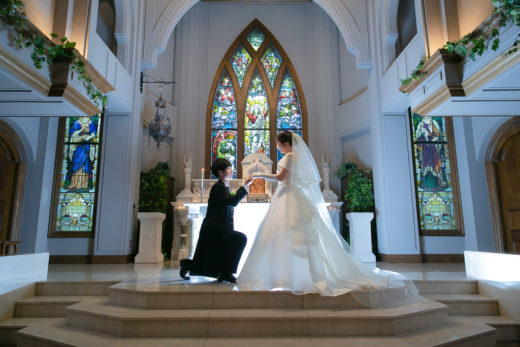 ステンドグラスが最も美しく輝く時期、それが太陽の位置が少し低くなるこの「 12月・1月・2月」なんです。挙式から1年、5年、10年と月日を重ねても、あの日と変わらないステンドグラスの輝きが、いつまでもおふたり心の中で鮮明に輝き続けていきます。