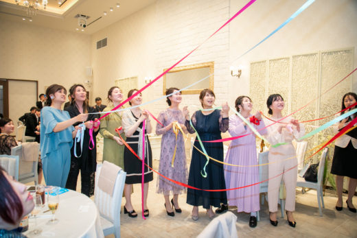 ブーケプルズやプレゼントプルズなどいろいろありますが、ハズレてしまったゲストのリボンの先にも飴などささやかなプレゼントをつけておけば、全員に喜ばれるのも魅力のひとつです。