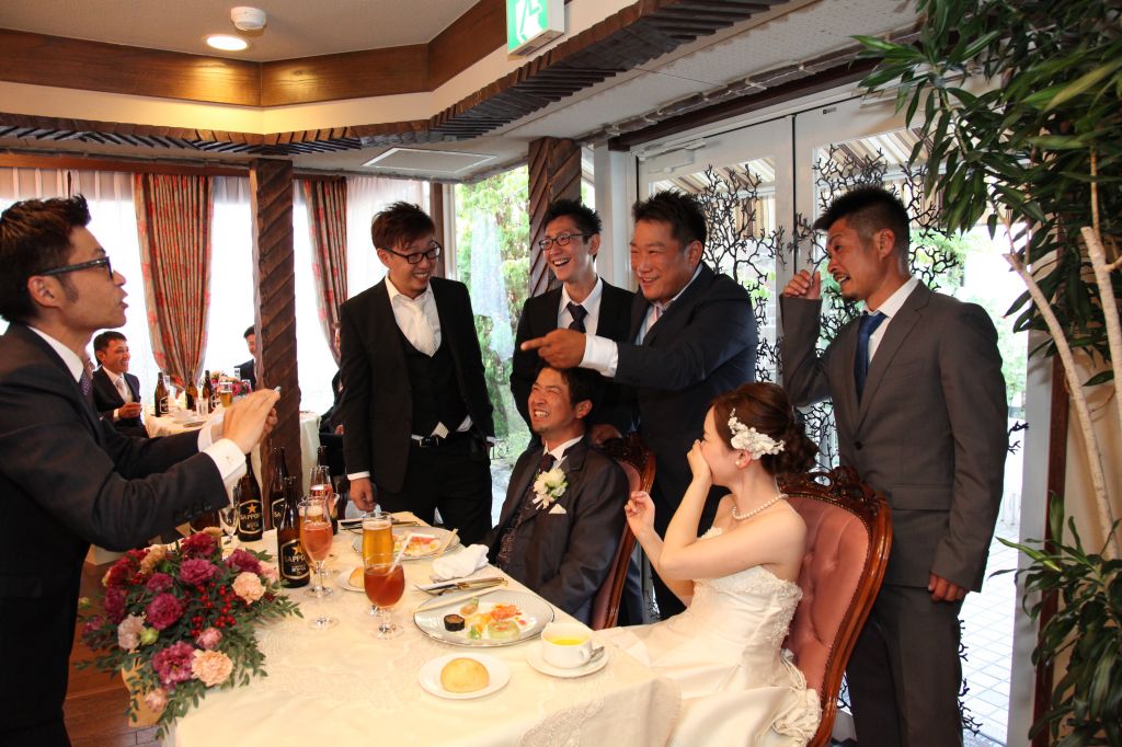 結婚式で欠かせないのは、やはりお写真です。プロカメラマンがお取りする写真はもちろんですが、ゲストの皆様もご自身のカメラに記念のショットを残したいはず!各ゲストテーブルごとのフォトタイムを設けると、中々おふたりの元に歩み寄れないご家族ともしっかり触れ合うことができ、記念のお写真も残せるのでオススメ♪
