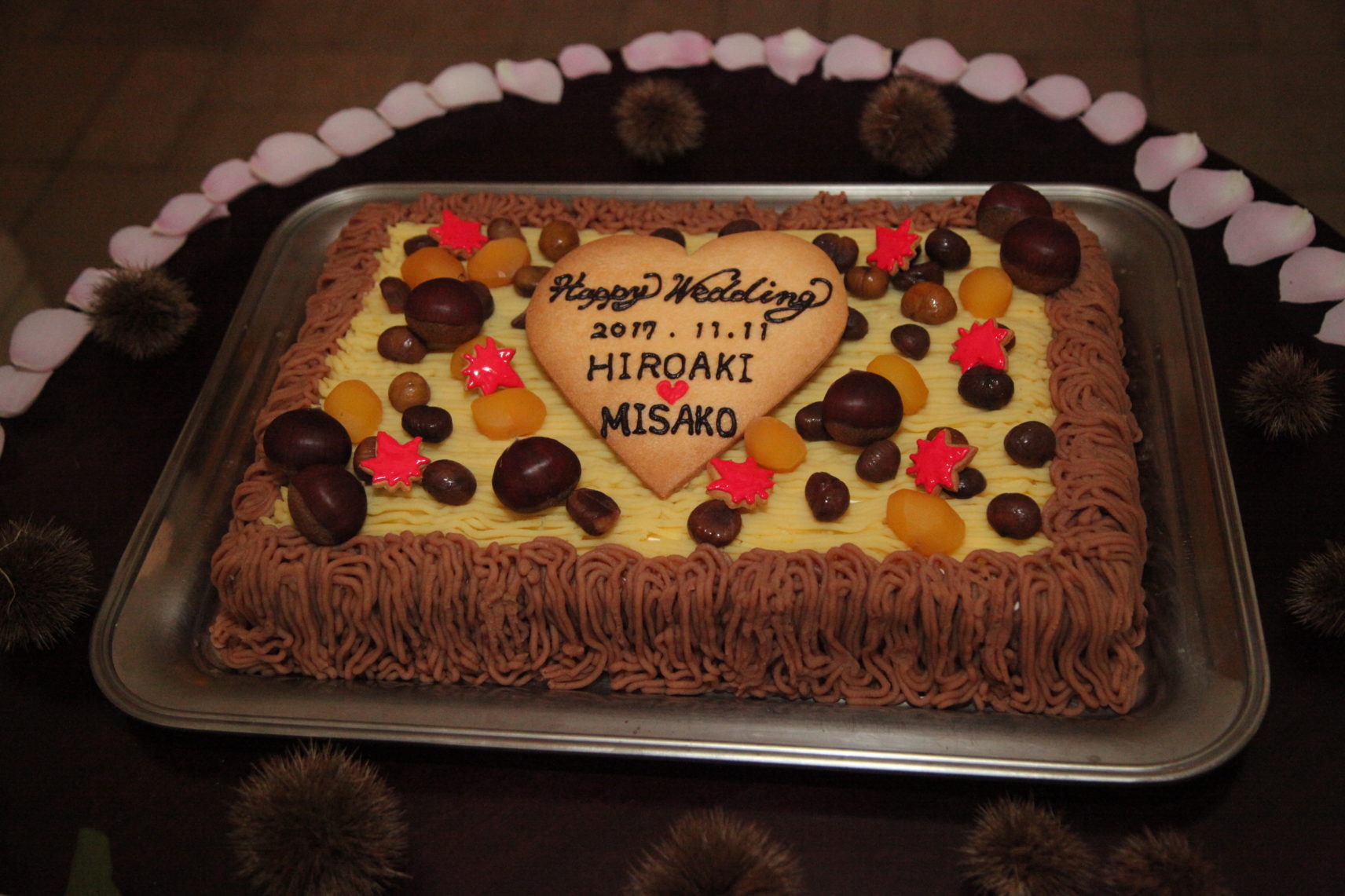 おふたりがこだわられたアイテムの1つがウエディングケーキ!秋らしさを大切にしたいということで、
