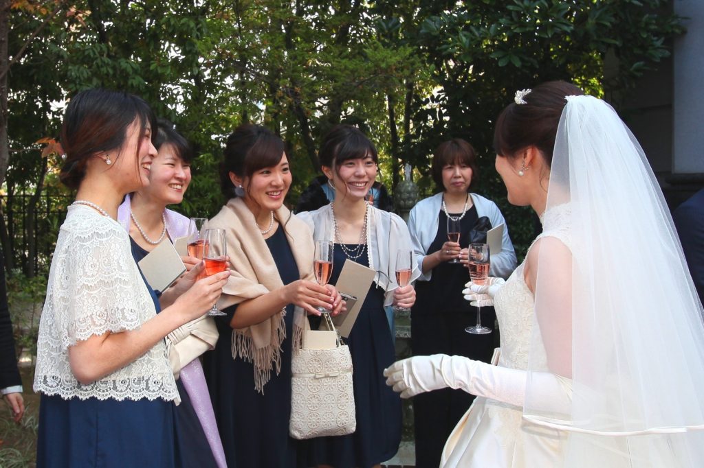 1日貸切のプライベートウエディングならではの、気張らないカジュアルな雰囲気が新郎新婦やゲストの自然な笑顔を引き出します。厳粛な挙式とのギャップが、最高のパーティの始まり!大好きな人たちと、グラスを合わせ会話を楽しみながら過ごして。