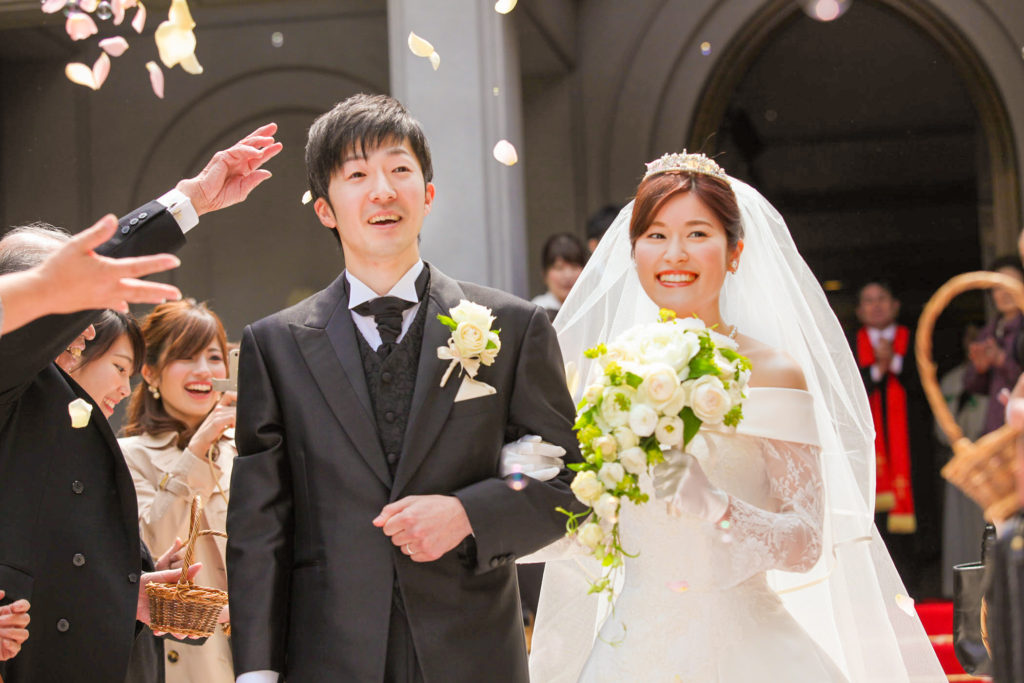 挙式の後に、会場を出たところで行われるのが一般的なフラワーシャワー。