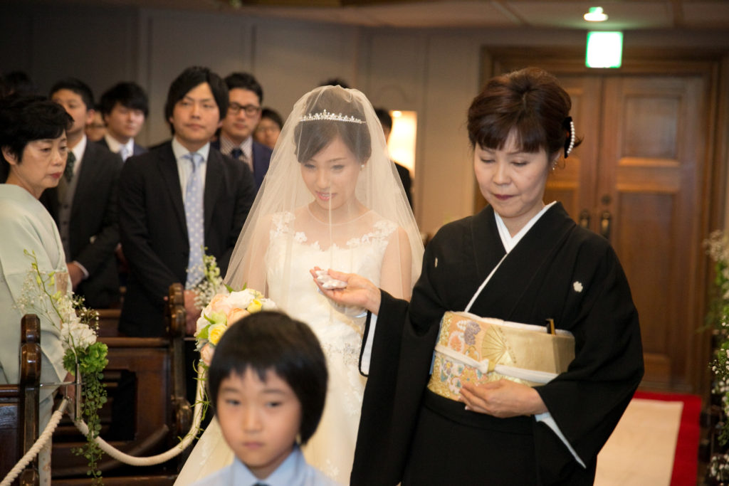 最近結婚式に参列した方は、花嫁の母親がベールをおろすシーンに見覚えがあるかもしれません。バージンロードを歩き始める前に、まずは感謝の気持ちを伝え、新しいパートナーの元へ送り出してもらいましょう。聖ペトロ教会では、ご家族様だけで過ごすことのできる場所でヴェールダウンご案内しますので、感動的なセレモニーなんです。