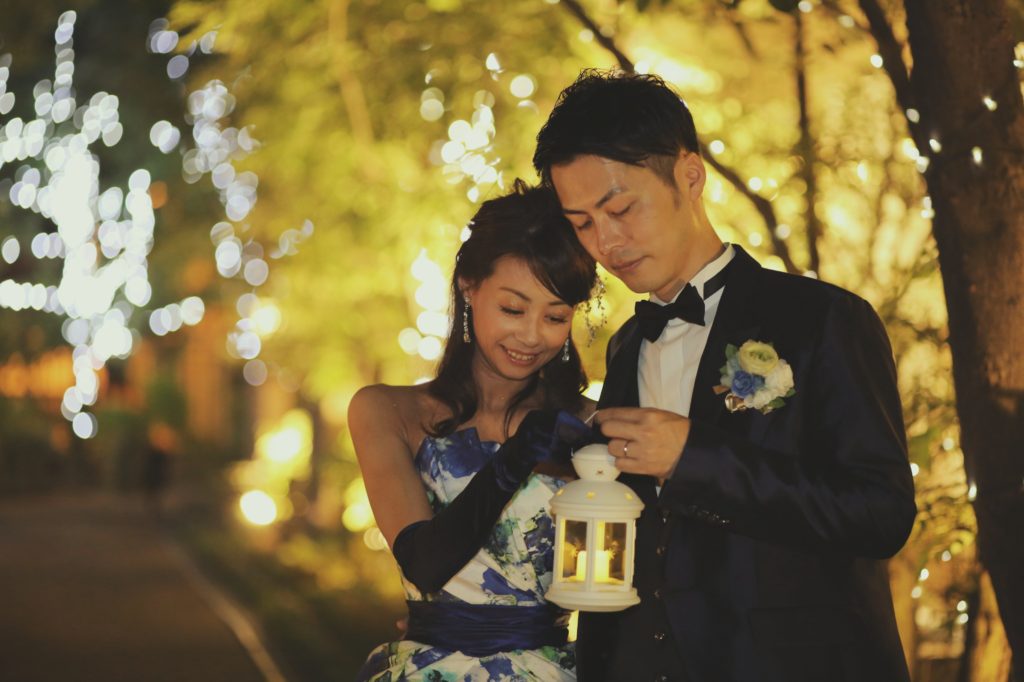 本日は、今人気のナイトウエディングの写真をご紹介します。夜ならではのイルミネーションをバックに撮影するナイトフォトは、明るい時に撮った写真とは違い、幻想的でロマンティックな写真になるので、とってもおすすめです!