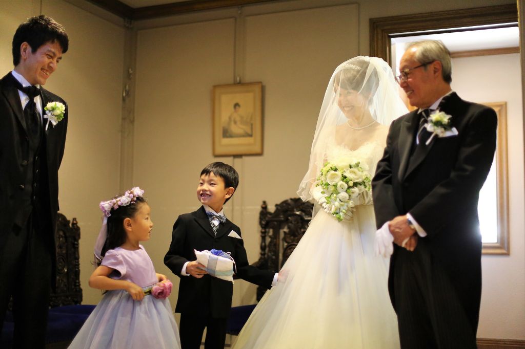 ゲストの注目が集まって緊張で泣き出す可能性があるので、幼すぎるお子様に頼むときには気を付ける