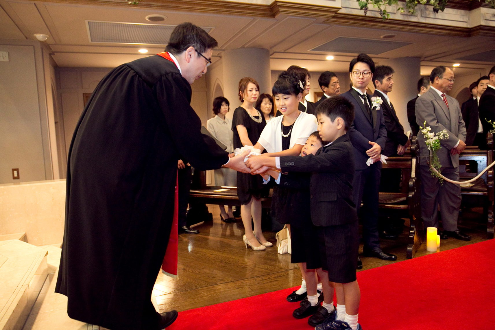 挙式の入場シーンでは、指輪を乗せたリングピローを大切に牧師のもとまで運んでくれる〈リングベアラー〉というお役目があります。ごきょうだいのお子様や、ご友人のお子様など、いらっしゃる場合はぜひお声がけしてみましょう!お子様の活躍場面があると会場も和やかになりますよね♪