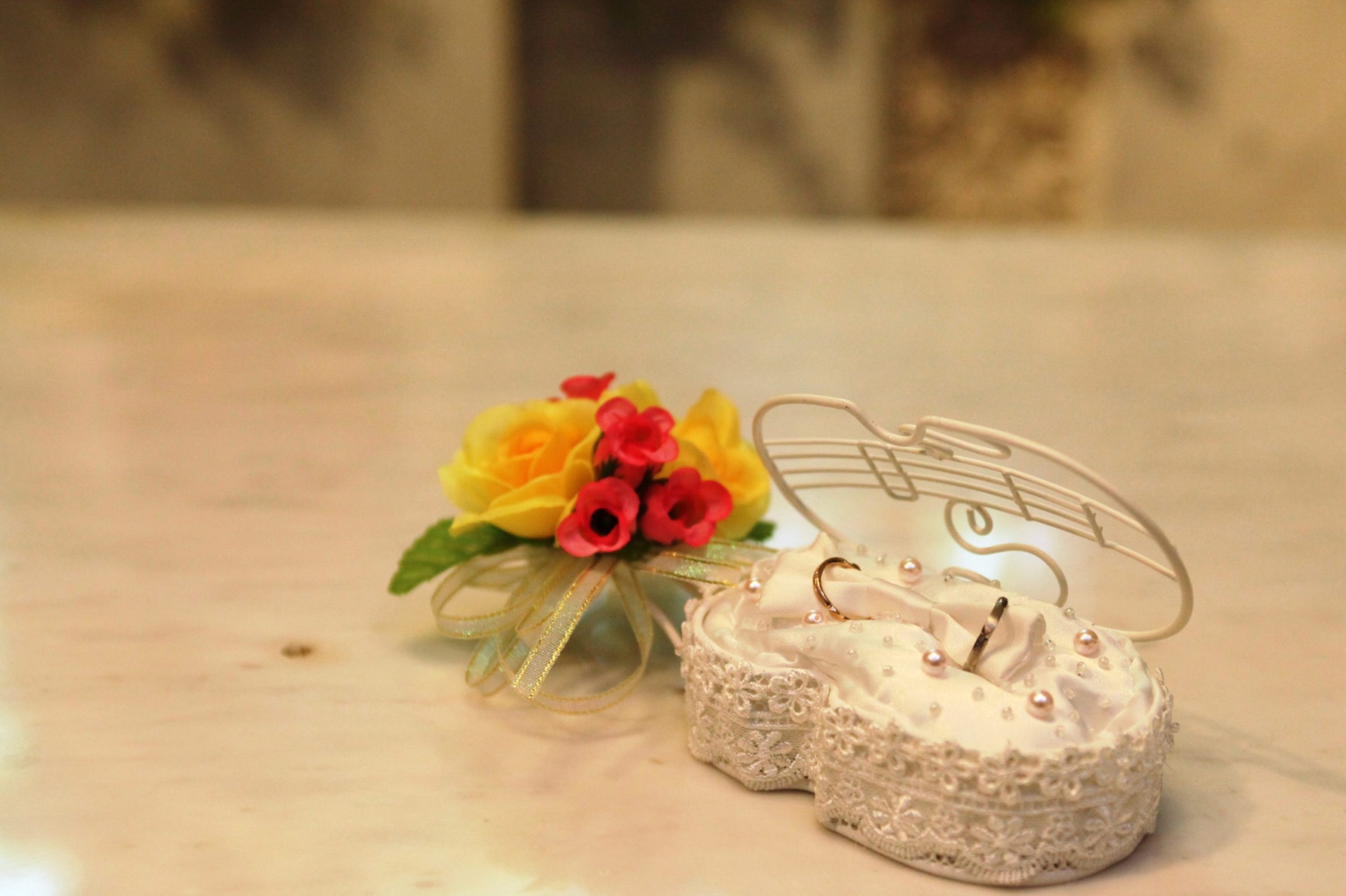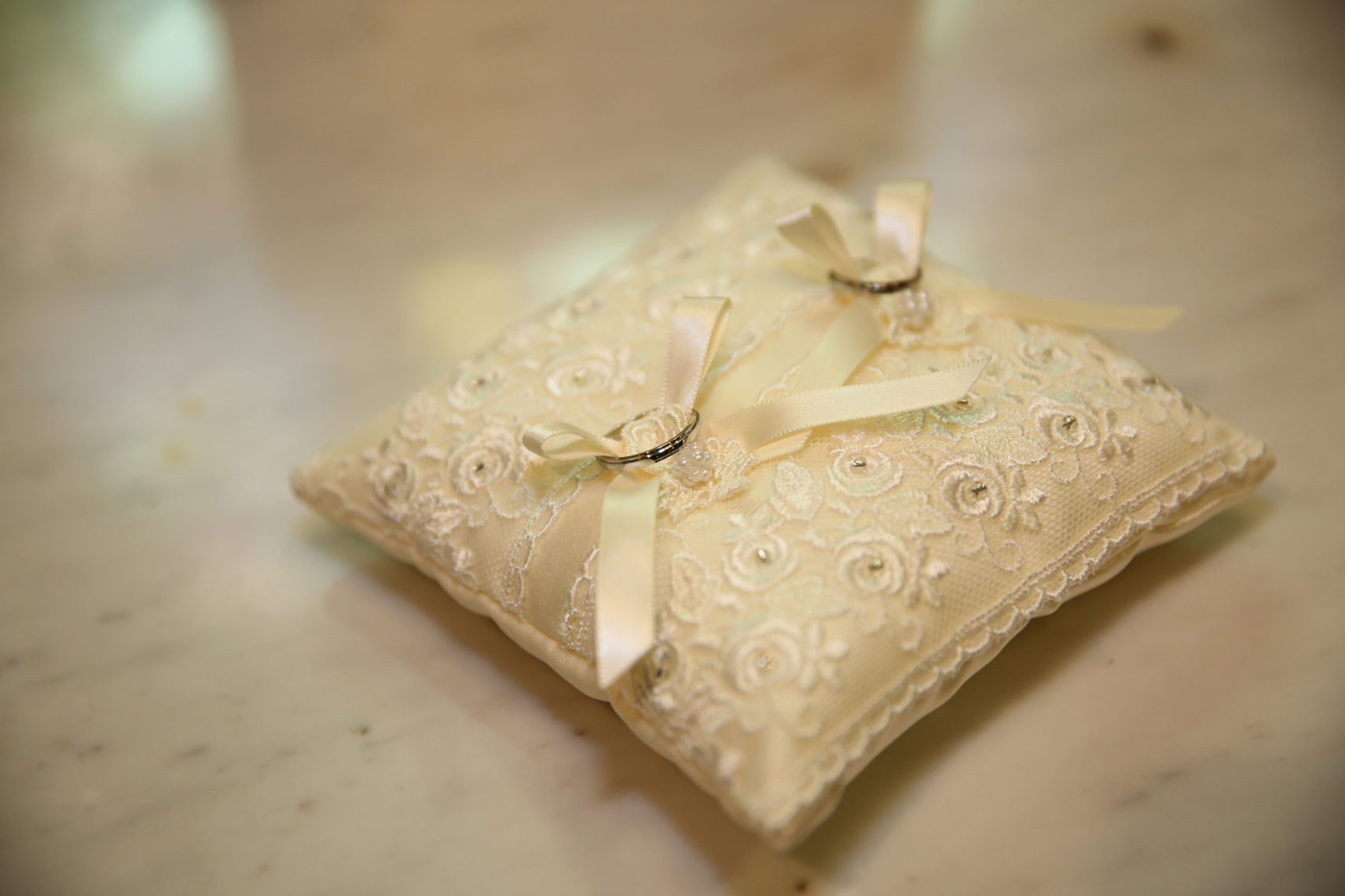 リングピローは、ふたりの永遠の誓いでもある指輪を置くものを指します。 リングピローは直訳すると指輪の枕という意味です。クッションタイプのものが一番多く用いられますが、一般的にそこについているリボンに指輪を通し、蝶結びにします。