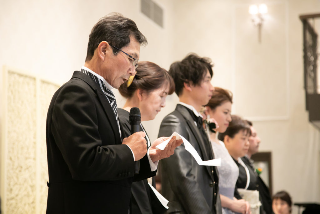 披露宴の結びには、ご両家の代表の方からご挨拶をいただきます。一番多いのは、新郎側のお父様です。どんなことを話すのがよいのかというポイントはHP内でもご紹介しておりますので、ご参考ください♪