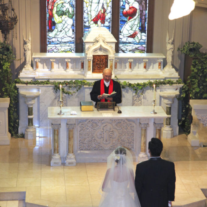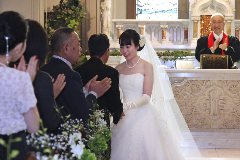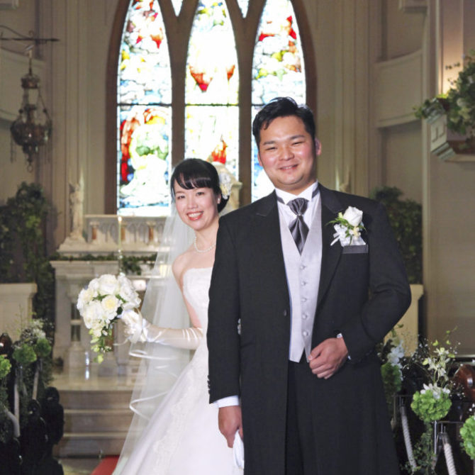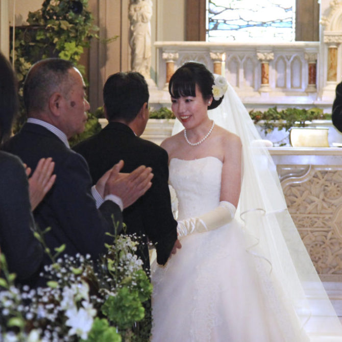 当日は、小川さん山下さんが付き添ってくださりとても安心し、メチャクチャ楽しく、とても幸せな時間でした。チャペルでは、ステンドグラスの前に立ち、美しさにうっとりしました。ふたりとも涙もろいので式が始まってすぐに涙がこみ上げてきました。家族に感謝の気持ちを素直に伝えることが出来、あのチャペルでなければできなかったと思います。
