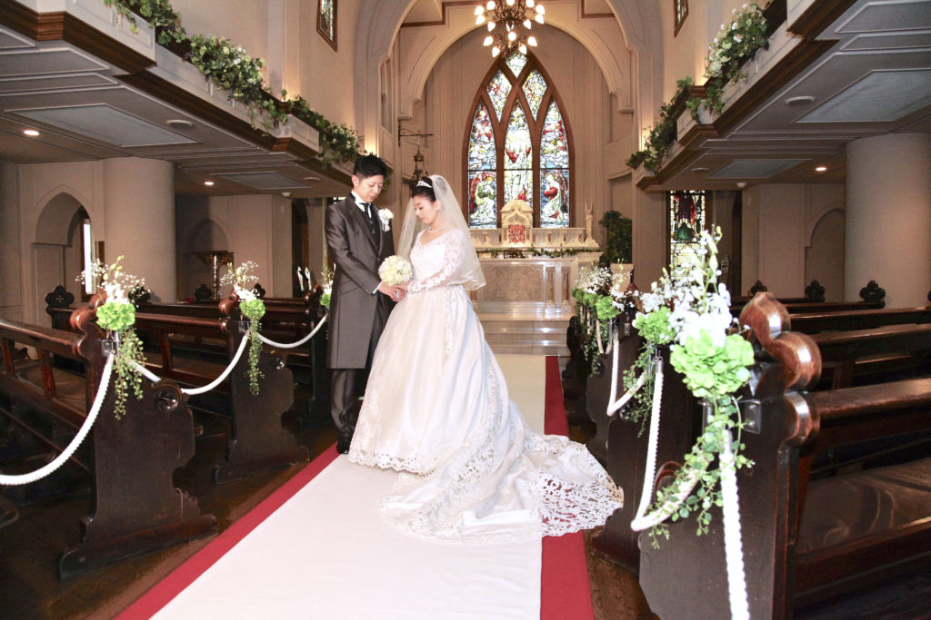 ステンドグラスの素敵な教会に魅力を感じたこと、試食をして料理がおいしかったことも、「ここに決めよう!」と思ったポイントです。