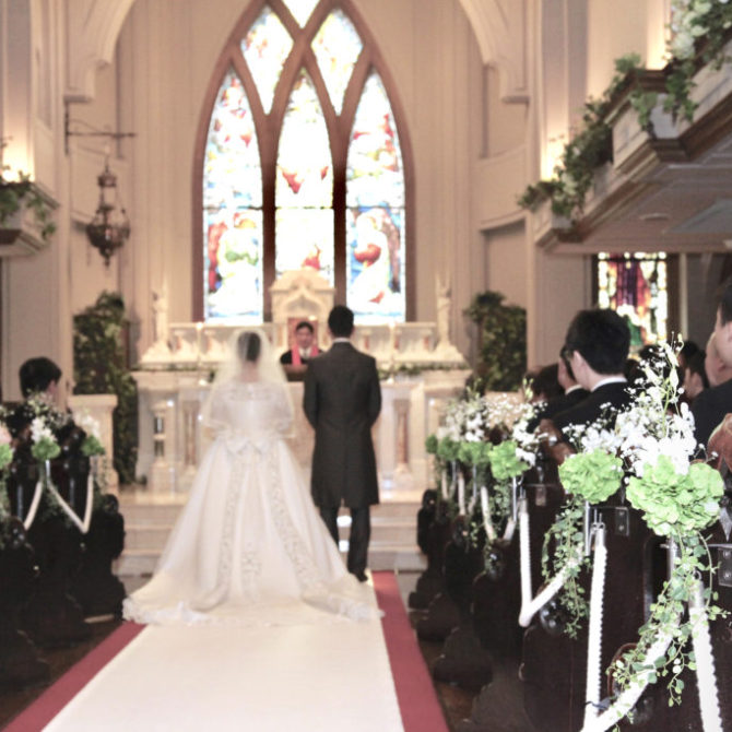 結婚式場を探していた時に、新郎の「聖ペトロ教会の見学をしたい!」という言葉がきっかけで訪れました。訪れる前に資料請求をしたのですが、古谷さんの字がとても綺麗だったことが印象的でした。色々な式場を検討していたのですが、最初に案内してくれた小川さんが、とても穏やかな方で、「この人にお願いしたい」と思いました。