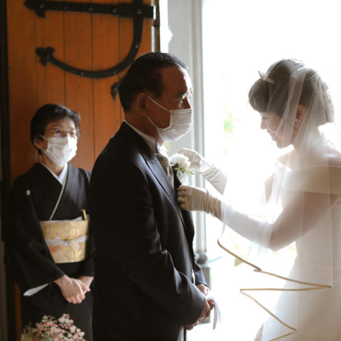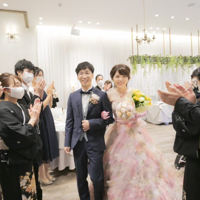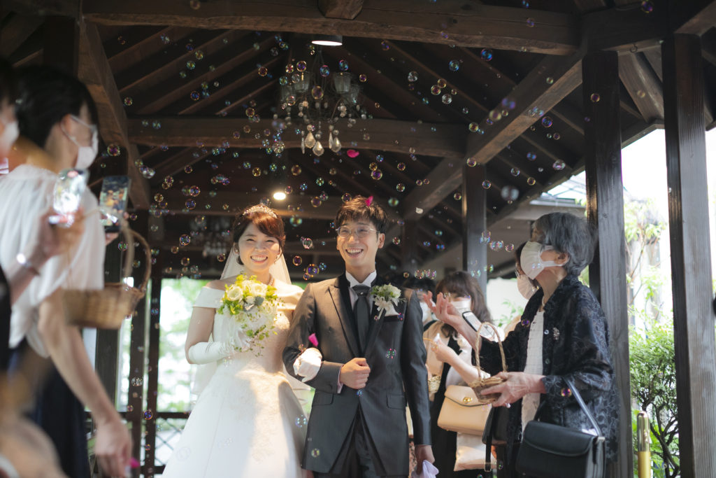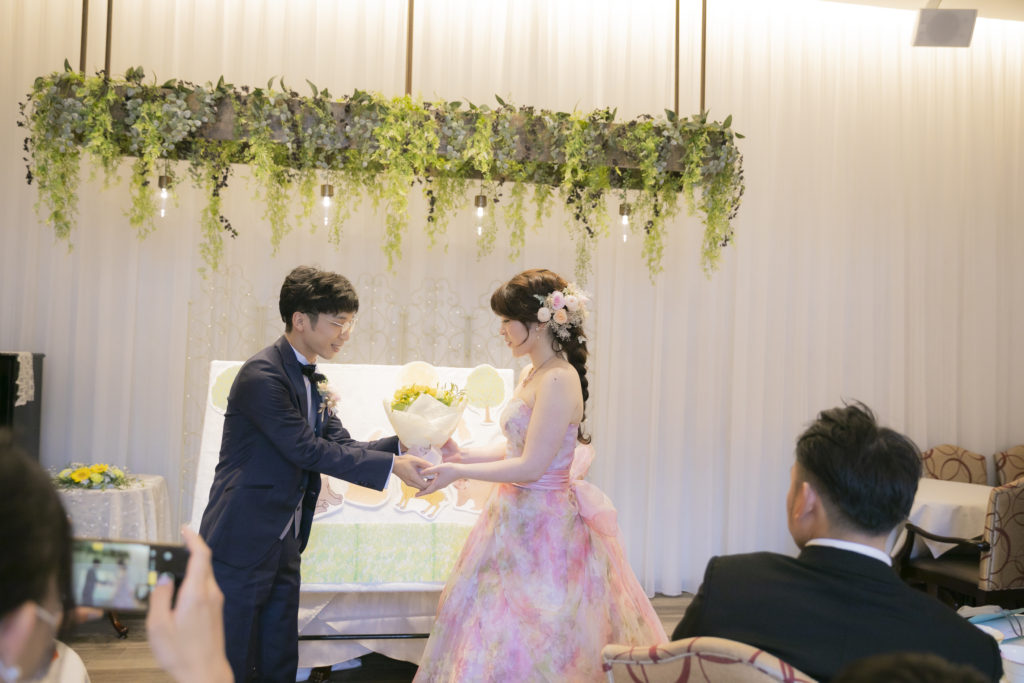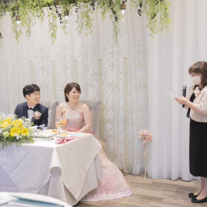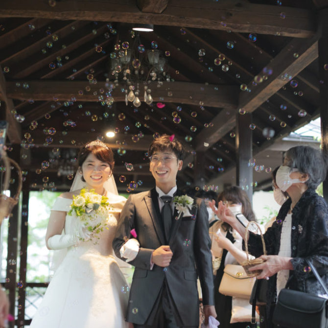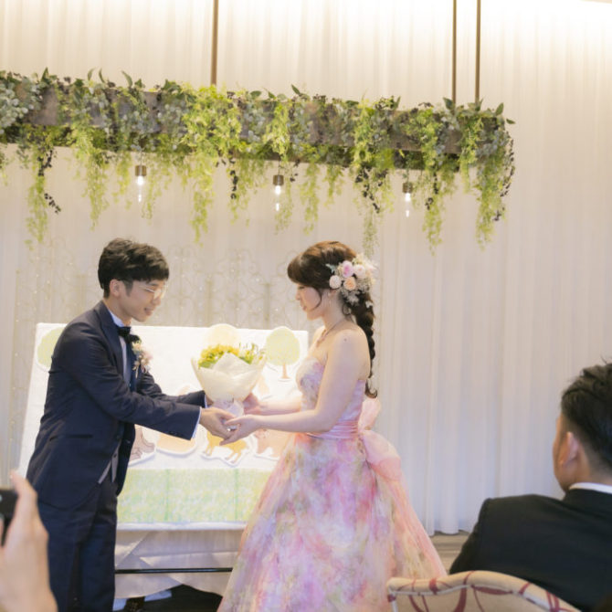 聖堂の厳かな雰囲気と少人数婚に丁度いい広さの会場、そして試食時には好きな物を聞いてすぐ料理に取り入れてくれる柔軟な対応が、印象に残りました。また、会場の使い方や演出などの具体的な提案があったことで当日のイメージが持てた上、緑溢れるガーデンや親しみやすいスタッフなどから、肩肘張らずに過ごせると感じたことが、決め手となりました。担当プランナーさんと年齢が近かったことで、良い関係を築いて式を迎えられました。親族からは、「距離が近く、楽しい時間を過ごせました」「いい式だったね。とても感動しました」という言葉をもらいました。当日まで準備物はたくさんありましたが、喜んでもらえたので、このような時期ではありましたが、開催して良かったです。ありがとうございました。