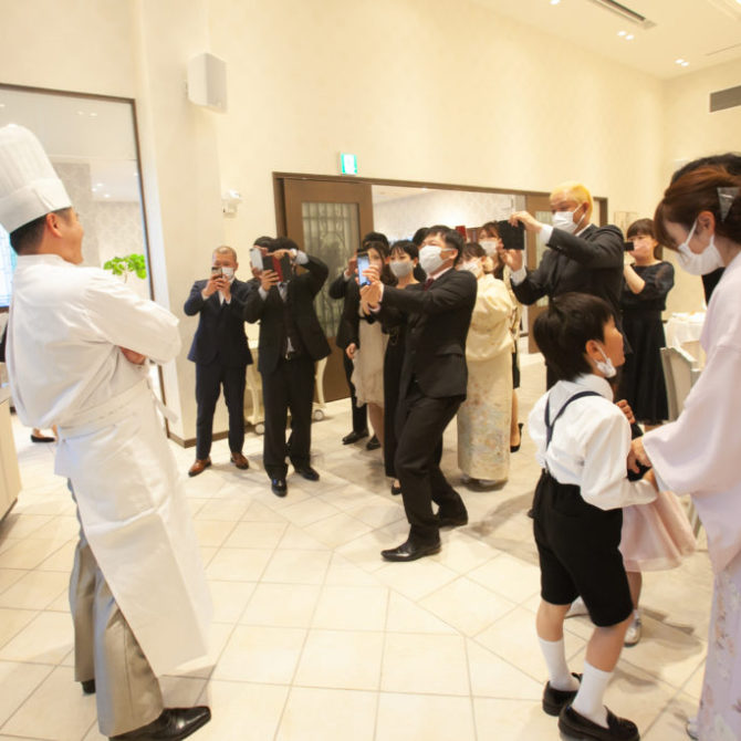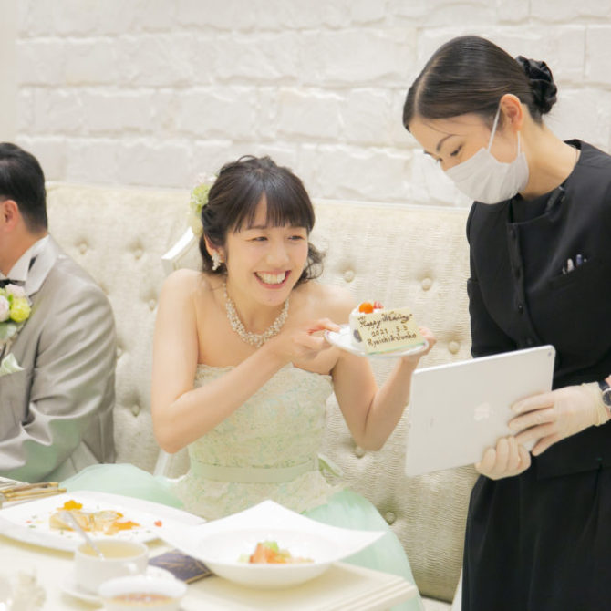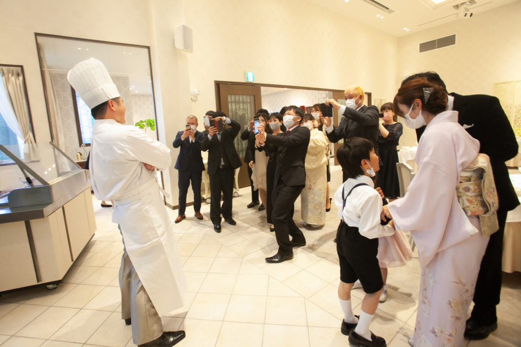 そして、涼一さんと淳子さんのウェディングケーキは、お仕事の造船にちなみ、船の形のオリジナルケーキ! それらに加えて、涼一さんがシェフになってのおもてなしやゲストの皆様との触れ合いの時間など、皆様にしっかりとおもてなしの伝わった素敵なお時間でしたね。