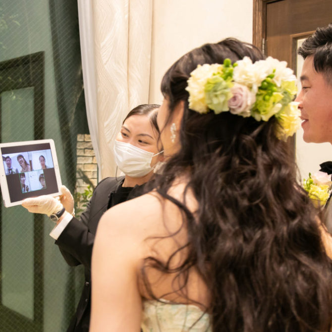 リモートでは、遠方の皆様に自分たちの晴れ姿を見せることもでき、皆様には「見れてよかった!」と言ってもらえ、スタッフさんたちには感謝しています。