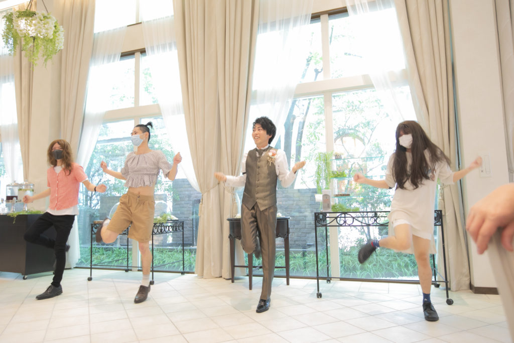 パーティ中は、ご友人によるお笑い対決や、凌希さんも巻き込んでのダンス、そして表彰式と、会場全体はとても盛り上がりました。他にも亜紀子さんのご友人によるムービーやサプライズのプレゼントもあり、亜紀子さんとご友人との絆が伝わる瞬間でした。おふたりの “ふたりらしく、ゲストの皆さんに楽しんでもらいたい” という気持ちをいろんな場面で感じられる笑いあり涙ありの素敵な結婚式になりましたね。