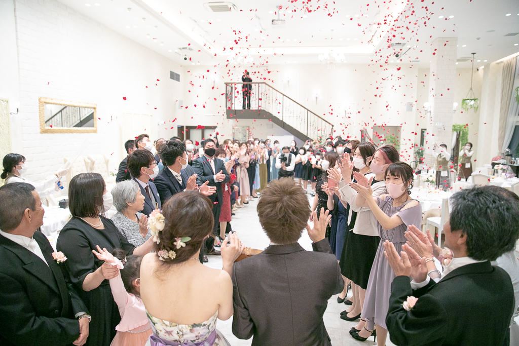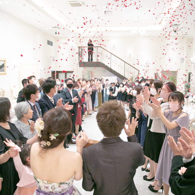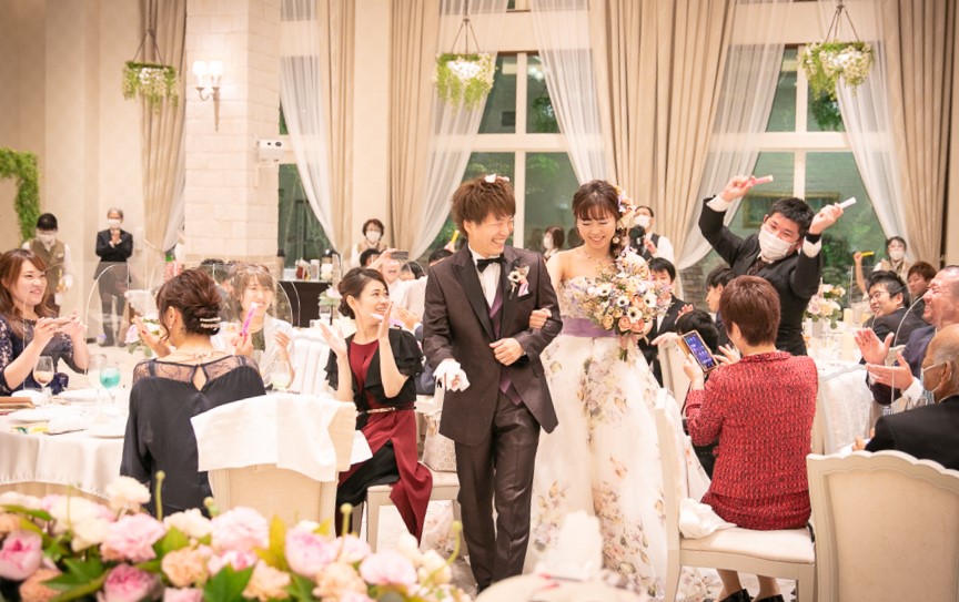 堅苦しい感じではなく、ラフでとにかく楽しんでもらいたい思いで当日を迎えましたが、自分自身も本当に楽しくて、一生の思い出に残る式となりました。一週間前に踊ると決めたNiziUのダンスも司会者さんも一緒に踊ってくださり、嬉しかったです。最後のサプライズでのゲストさんからの手紙に本当に驚いて、泣かないように意識していたのに涙が止まりませんでした。最高の結婚式をありがとうございました♡ 麻由奈
