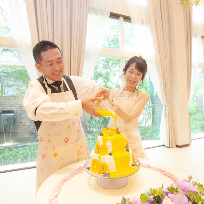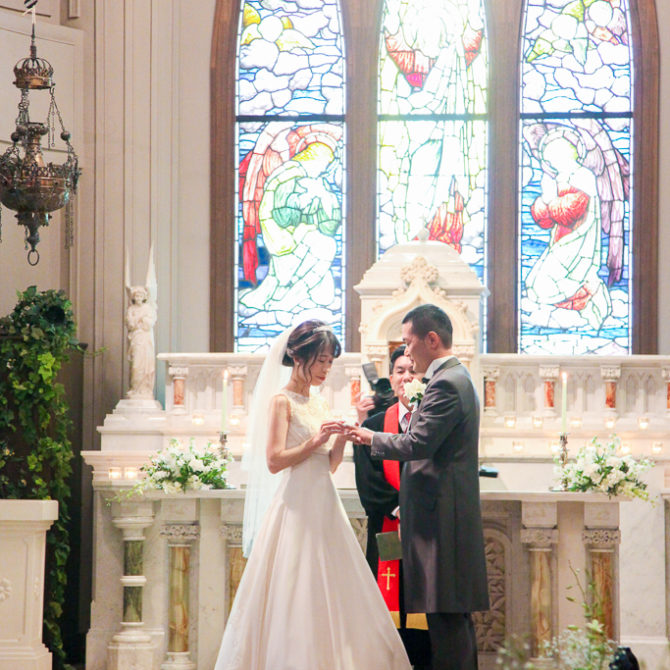 聖ペトロ教会の沢山の木々に囲まれた緑あふれるガーデンや厳かな聖堂、そして野菜ソムリエのシェフが手掛ける美味しい料理をとても気に入ってくださった伸弥さんと亘佳さん。