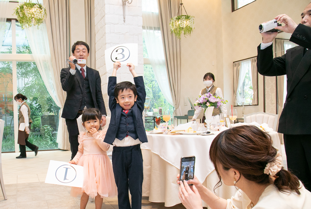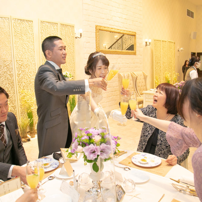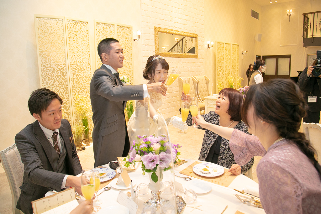 当日は挙式を終えるまでの緊張感と打合せしてきた事がきちんとできるかという心配がありました。ただ挙式を終えると緊張感も解け、披露宴はリラックスした気分で楽しむことが出来ました。堅苦しくなく楽しめるゲストとの触れ合いを重視した披露宴だったので、自由にテーブルを回って会話や写真撮影などを楽しめ、「こんな披露宴は初めて!」「新郎新婦と距離が近くて良い式だった」と言ってもらう事ができ、本当に私たちの希望した内容のオリジナルウエディングを挙げることができました。最後のサプライズも忘れられない思い出になり、ペトロ教会で結婚式が出来て本当に良かったです。