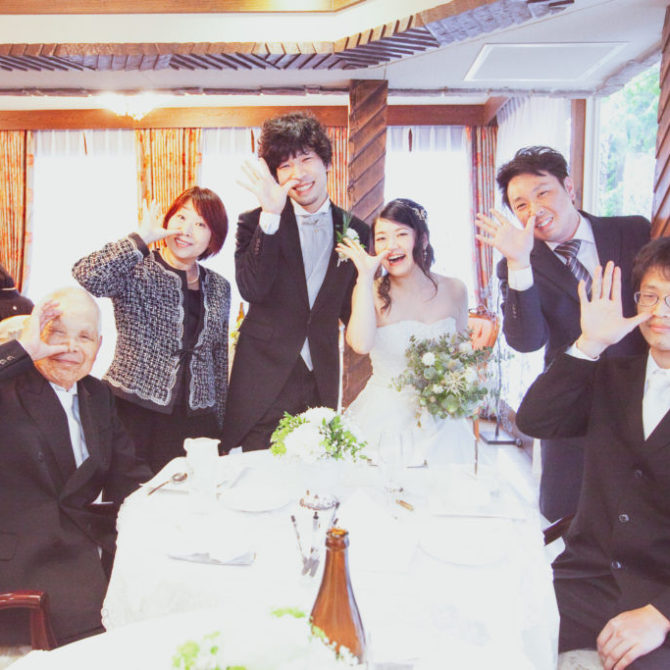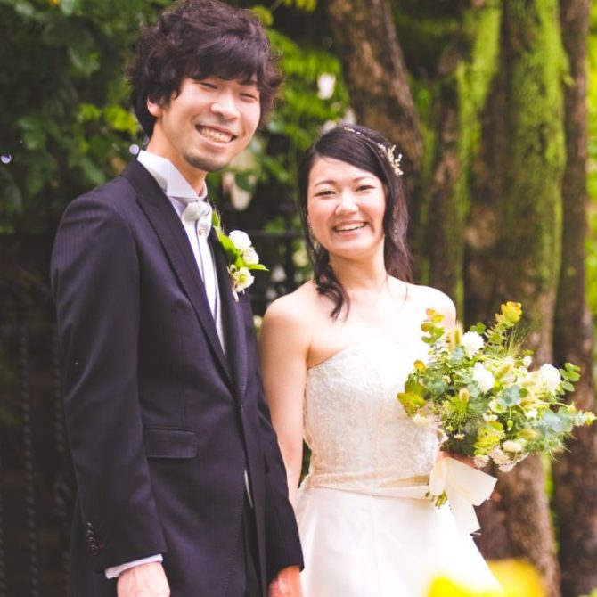 親族から、「親族と深く関われる結婚式で良かった」「楽しかった」「こんなに楽しい結婚式は初めて」「席札がよかった」などうれしい声も聞けました。当日は雨が降ってしまって残念でしたが、緑が雨に濡れて綺麗に見えました。