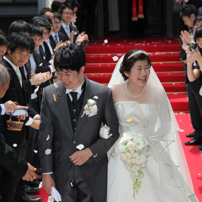 元々、教会式希望で会場を探し始め、聖ペトロ教会と出会いました。会場見学に行くと聖堂、ステンドグラス、ガーデン、ゲストハウスなど敷地にある全ての雰囲気がふたりの好みで一目惚れしました!また人気№1のドレスショップ“ブライダルギャラリー福茂”の衣裳が着れることと試食で料理がとても美味しかったことも決め手です。