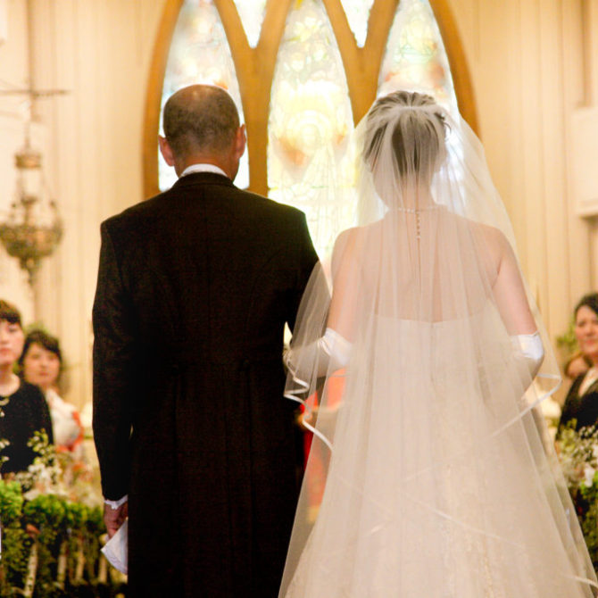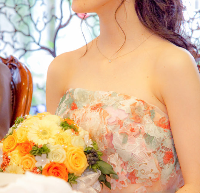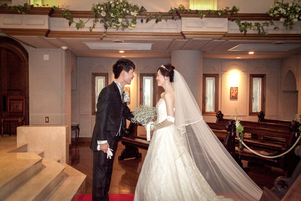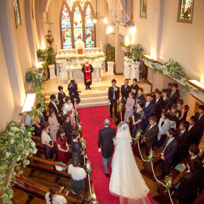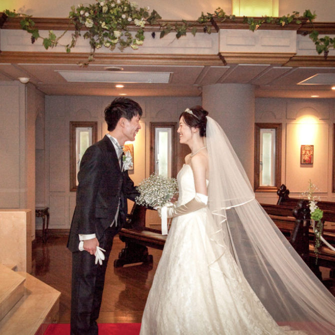 初めて訪れた時の印象は、聖堂のステンドグラスの雰囲気が間違いなく市内の他の会場よりも立派で、一生に一度の結婚式を、どんな風に創っていくかを親身になって考えてくれたから、聖ペトロ教会を選びました。そのお陰で、結婚式の準備といえば、大変なイメージだったけど、打合せもすごく楽しかった。