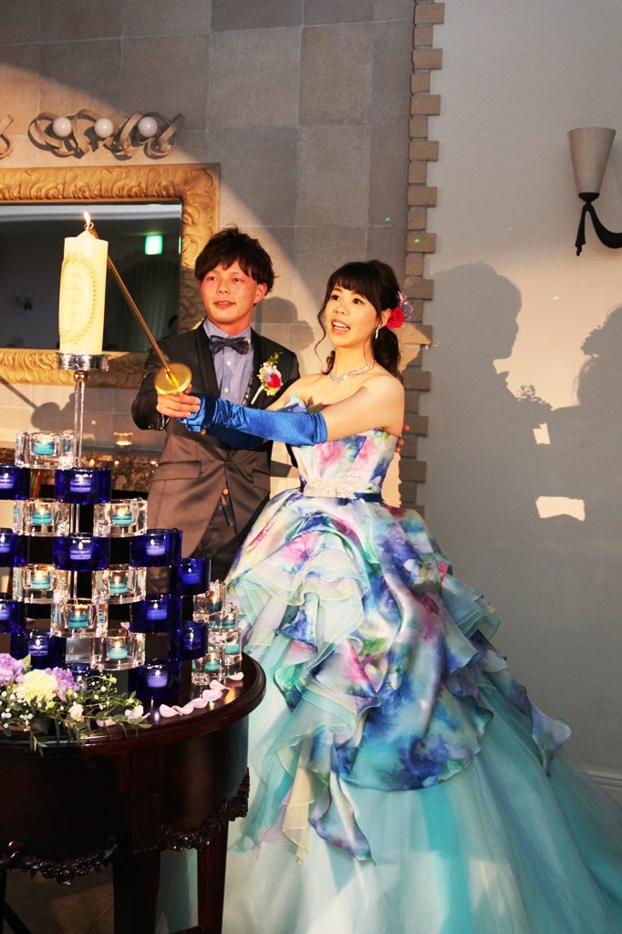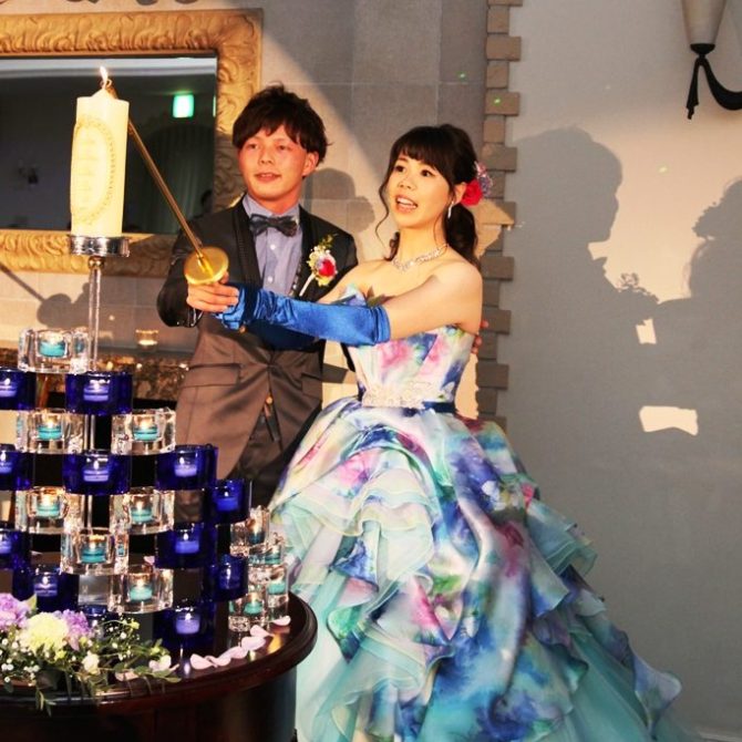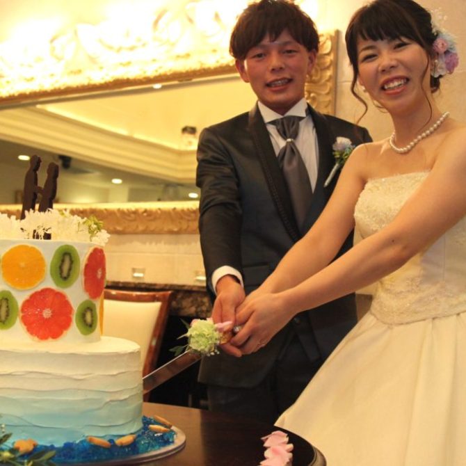 やりたい事と金銭面で悩んでいると、山下さんがきちんと対応して下さり、安心して任せられると感じました。私たちの他愛もない話をいつも笑って聞いて下さり、ふたりの雰囲気を理解してくれたことで、毎回打合せが楽しかったです。ウエディングケーキの青のグラデーションも見事にイメージが伝わり、再現して下さったことに感動しました。二次会準備のことも考えて協力して下さったりと、自分たちのペースを尊重してくれたことで、少しずつ段階を踏んで、安心して準備ができました。1回の結婚式ですが、サプライズや準備グッズのことなど、山下さんとは密なコミュニケーションがとれて、スタッフというより仕事仲間や友達のような接し方に安心して準備出来を行うことが出来ました。本当にありがとうございました。