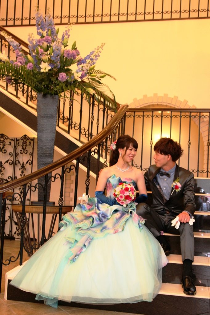 結婚式当日は、「本当に今日なのか!」と実感が湧かないまま、でも楽しい時間はあっという間に過ぎました。最後に私たちが並んで皆さんに感謝の言葉を言う時も、スタッフが並んでいて、当日上手く言えなかったけど、ペトロ教会で結婚式を行うことが出来て、本当に良かったなと思いました。ドレスを選ぶにしても、花や髪型を決めるにしても、自分のわがままを聞いてもらいました。その方々と会える時間も、本当に楽しく過ごすことができました。