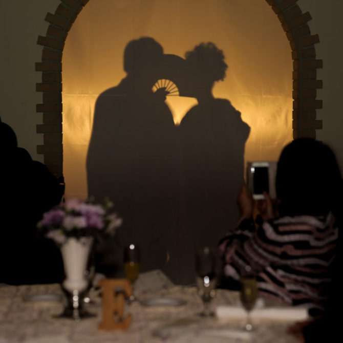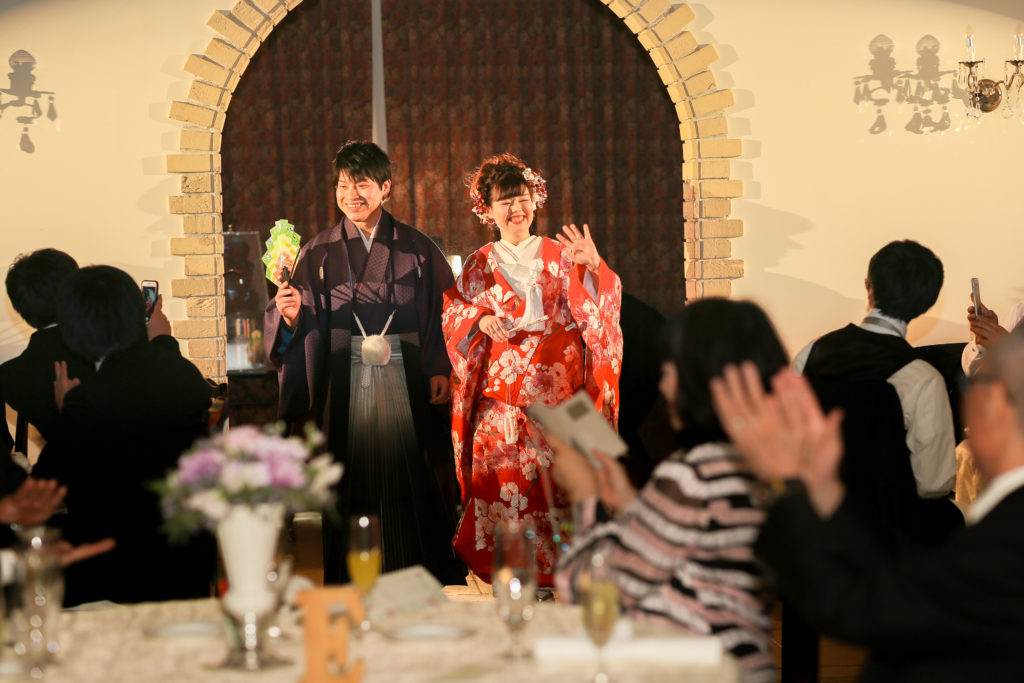 ふたりとも動物園や水族館が大好きで、デートでもよく行っていました。そこで挙式が始まる前のウェルカムパーティで、「これはどこの動物園・水族館?クイズ」を行い、パーティ会場には動物の写真や特徴をまとめて飾りました。また、和装の時のシルエット入場や新郎によるグリル実演など、とても盛り上がりました。