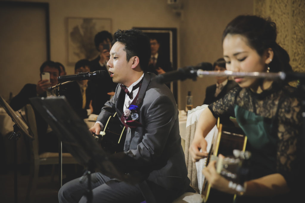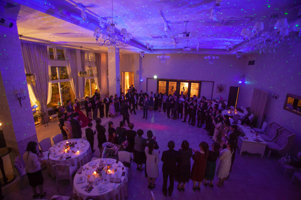 パーティのラストシーンでは、全員でひとつの円を作り、キャンドルリレーが行われました。ピアニストの生演奏に乗せて、おふたりから繋がれていくキャンドルの灯は、ゲストとふたりの想いが一つになり、縁が結ばれたことを象徴するような時間となりました。
