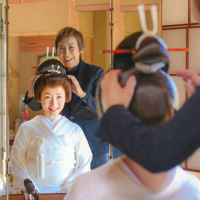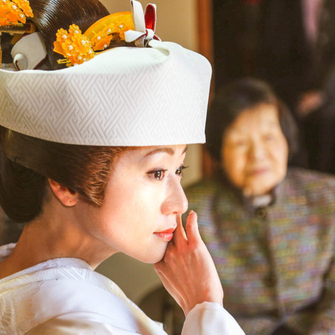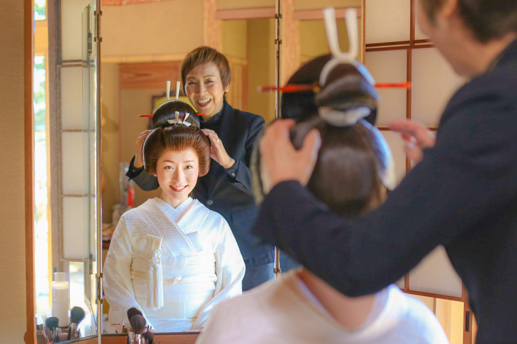 父と母、そして兄も結婚式を挙げた艮神社は、日頃からお参りに訪れたりとても思い出深い場所です。自宅での準備は、お祖母ちゃんに白無垢姿を見せてあげることが出来て、本当に良かったです。