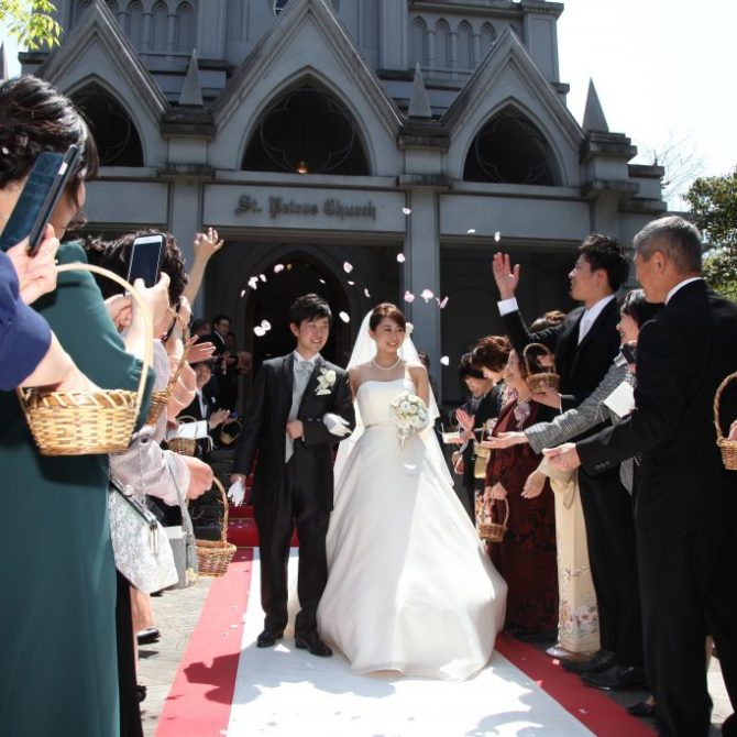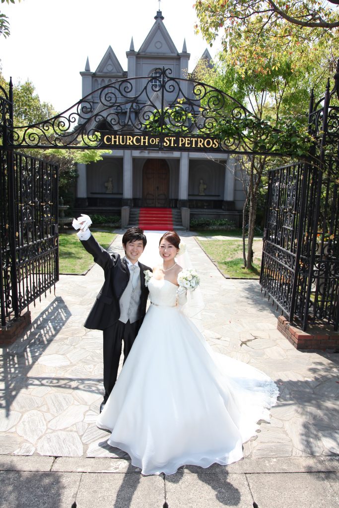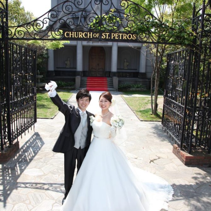 聖ペトロ教会を知ったのはホームページです。決定した最大のポイントは、聖堂のステンドグラスと庭の美しさが気に入ったこと。特にステンドグラスの神聖な美しさには、とても魅力を感じました。初めて訪れた時、門を一歩入った瞬間が非日常的でとても印象的でした。聖堂はホームページで見るより本物の方がだんぜん趣があり「ここで結婚したい」と、心からそう思いました。
