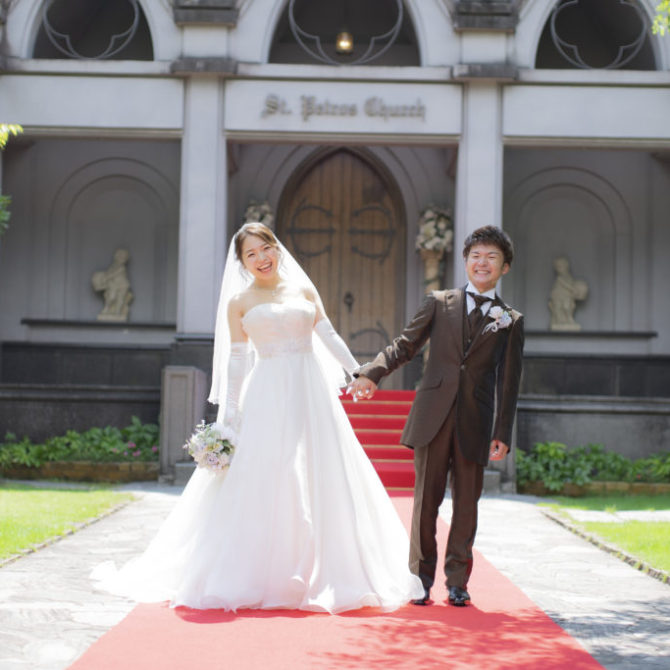 聖ペトロ教会を選んだのは、木製のパイプオルガンがある素敵な聖堂と、ゲストとの距離を感じることなく、アットホームなパーティ会場で自分達らしい演出や自由度の高い結婚式が挙げられると確信したからです。また、私たちふたりの結婚式を心の底から「素敵な一日にしてあげたい」というスタッフの方々の、温かい気持ちに心を奪われたからです。コロナのことで悩みながらの打合せの中でも、行くたびに励ましてもらい、背中を押してもらいました。細かいところまで試行錯誤しながら、無事に当日を迎えられるように色々と配慮して頂き、一緒に素敵な式にしたいという心遣いに、感謝の気持ちでいっぱいです。