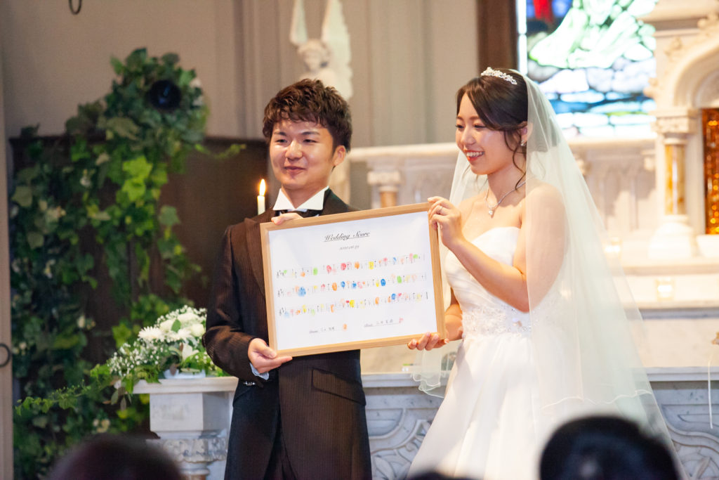 当日は天候にも恵まれ、一日のほとんどを笑顔で過ごし、夢のような、とにかく幸せな一日でした。ゲストの皆様も、美味しい料理やバーテンダーのドリンク、ゲームなどで楽しく過ごせたようで嬉しかったです。また、コロナ禍で結婚式をするか迷っている友人が、私たちの結婚式を見て、「自分たちも挙げたい!」と思ってくれ、挙げて良かったなと思いました。最後の全員からのサプライズプレゼントが本当に感動しました。式が終わってからも、また遊びに行きたくなる温かい空間の聖ペトロ教会が大好きです。