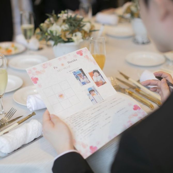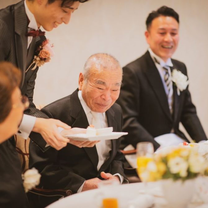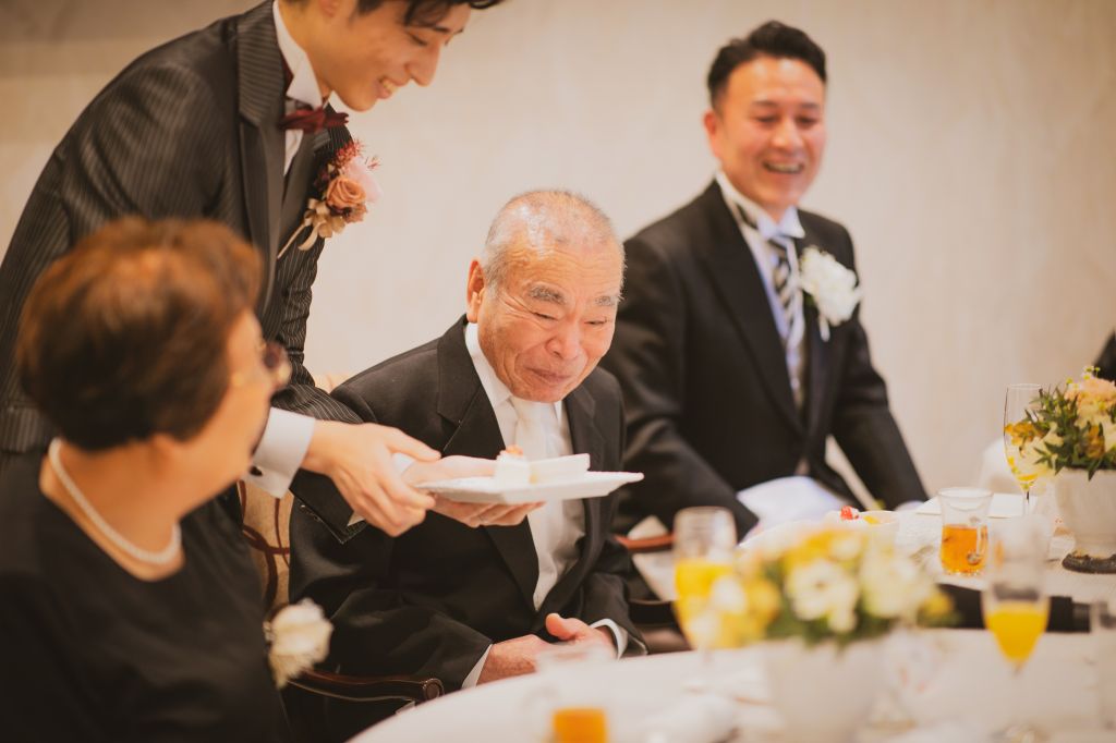 そして、この日を楽しみにしていた、両家のおじいちゃん・おばあちゃんへは、メッセージを添えたデザートプレートをおふたりから一言とともにサーブ。おふたりのことを知っていただく為のエピソードビンゴもとても盛り上がりましたね!