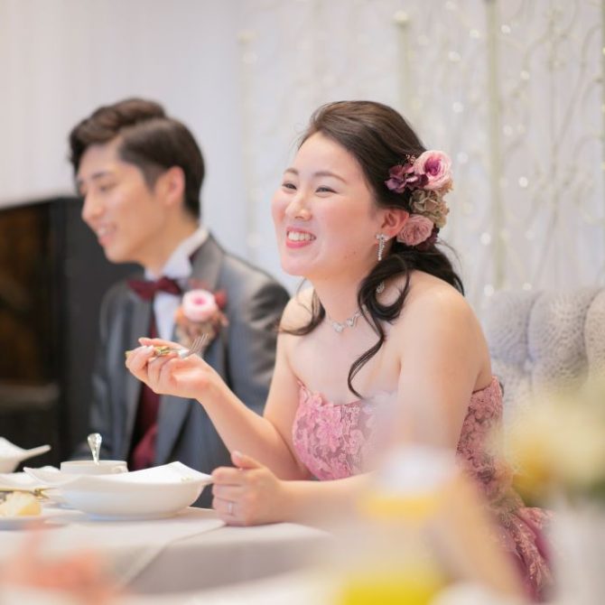 私たちが見学のときに試食して魅了された料理が、ゲストにもとても好評で、みんな残さず美味しそうに食べていたことが印象的でした。また、プランナーの古谷さんは話しやすく、夜遅くなることや、急な変更があったときにも親切で思いやりのある対応をしてくれ、感謝しています。結婚式当日は、ファーストミートやセカンドミートで、私たちふたりや両親との時間を設けて、感謝の気持ちを伝えることができ、とても大切な思い出になりました。