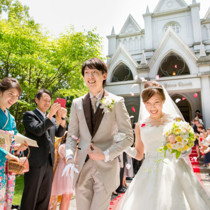 聖堂のステンドグラスがとてもキレイで感動したこと、スタッフさんも皆さん笑顔でとても雰囲気も明るい式場だと感じ、とても緑(自然)が多くて温かみのあるところに惹かれて選びました。またプランナーさんの対応もよく素敵な式場だと思いました。一からのスタートで何も分からない私たちに、一つずつ丁寧に色々教えてくださいました。たくさんの意見をしっかりまとめてくださって、時にはステキな提案がありと、楽しく準備できました。衣裳選びや、お花など一つひとつ専門の方が一緒に考えてくれて、とても楽しかったです。