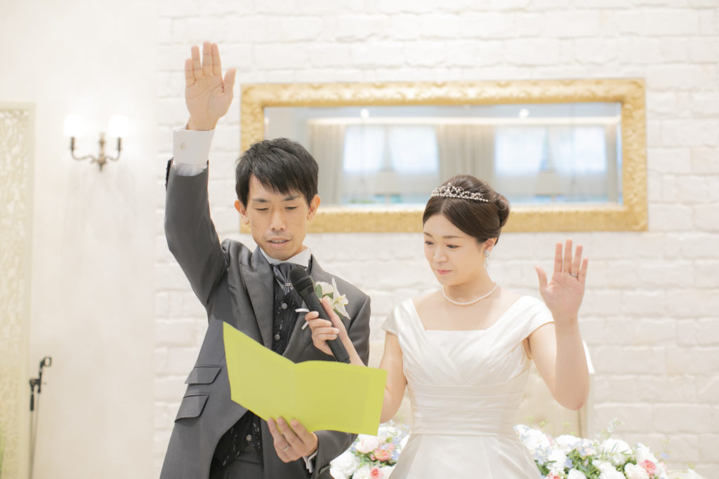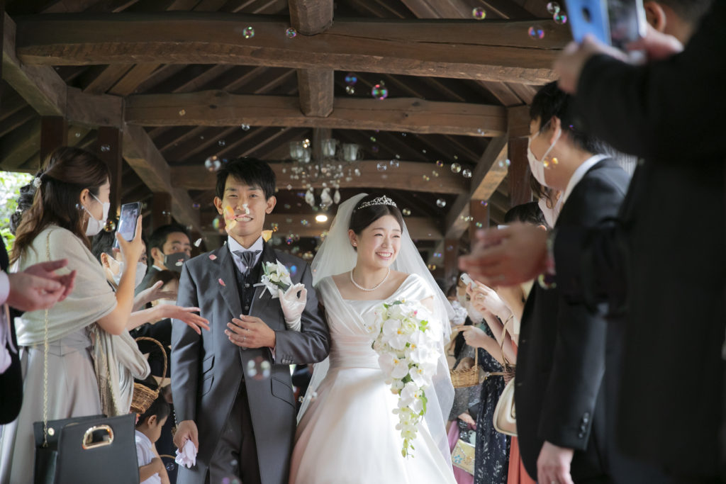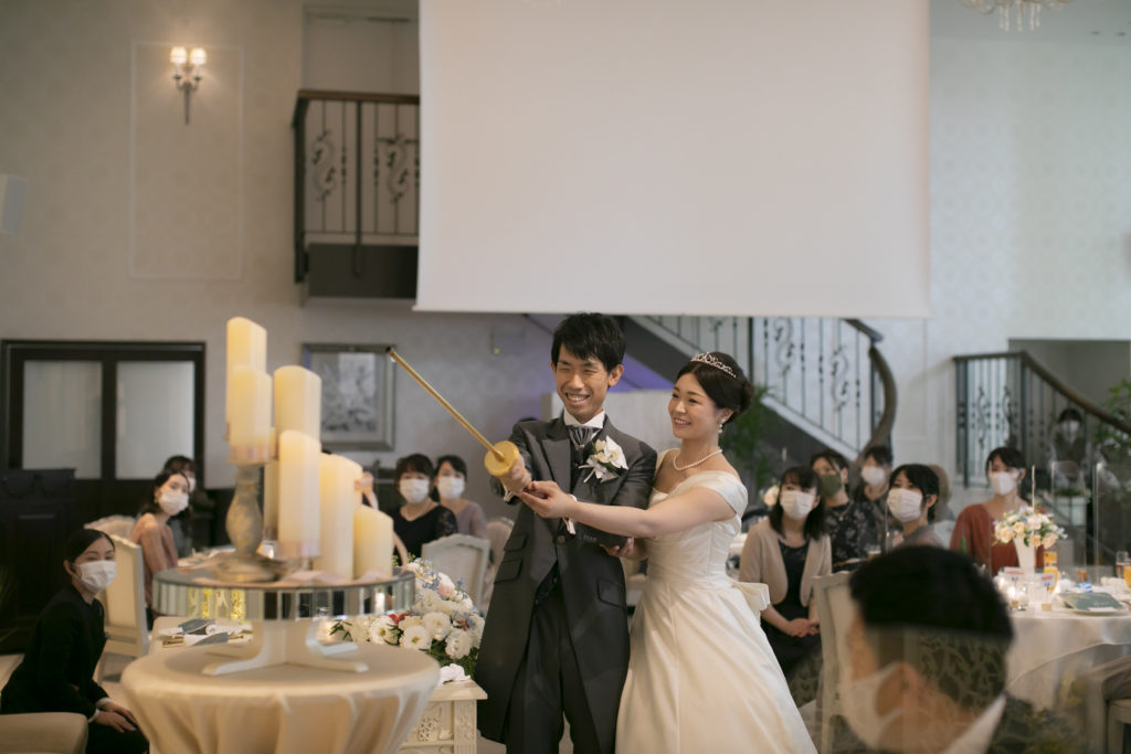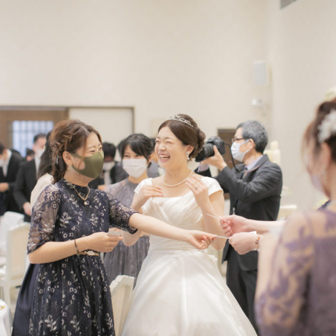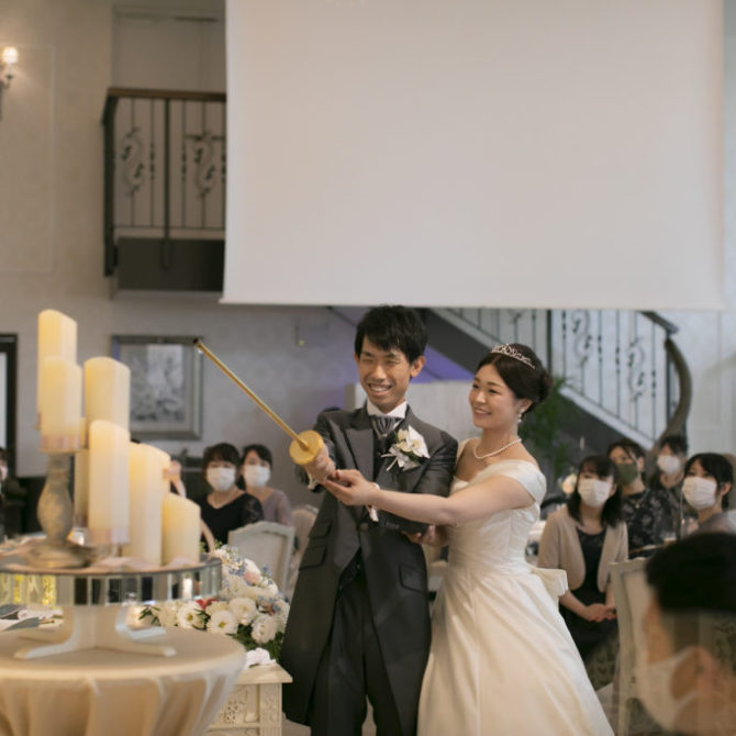 料理のおいしさ、ゲストへの気遣い、ゲストとの距離の近さ、そして今まで出席した結婚式にはないワクワクする進行だったことが決め手になりました。ふたりの共通点からしっかりしたテーマやゲーム、イベントなどを考えてくださいました。また、急遽出席することになった祖母への対応や心遣いにもとても感謝しています。結婚式当日は、最初から最後までずっと楽しくて、想像しきれない展開にずっとワクワクしていました。挙式前には、父と母へコサージュを渡し、ベールダウンをしてもらったことで、普段あまり見ない父と母の姿や表情を間近で見ることができ、とても感動しました。挙式中の牧師先生のお話は、自分自身の考え方や生き方を改めさせられるようなことばかりでした。ゲストからは、「今までに参加したことのない結婚式でとても楽しかった!」「こんな結婚式なら私もしたい!」「料理がすごくきれいで美味しかった!」などの多くの感想をもらいました。ゲストともよく話ができて、私たちが思い描いた通りの結婚式でした!